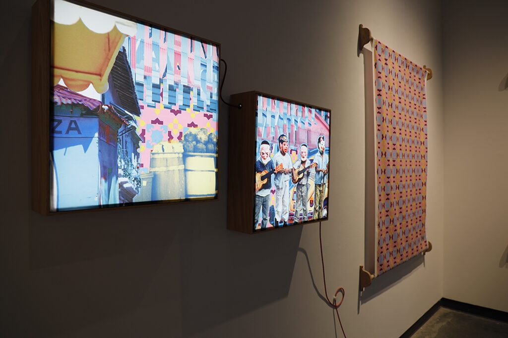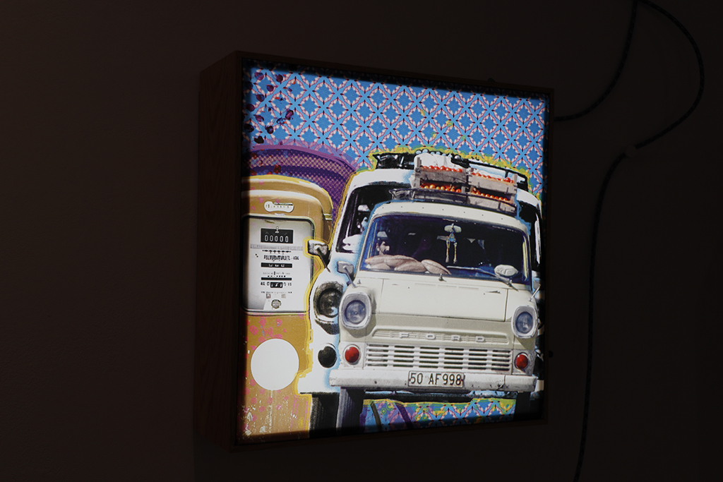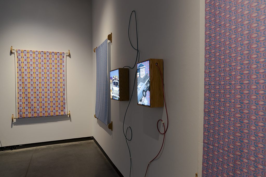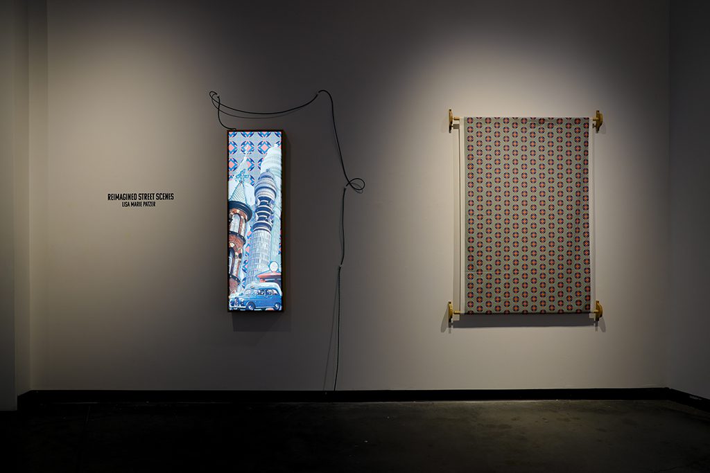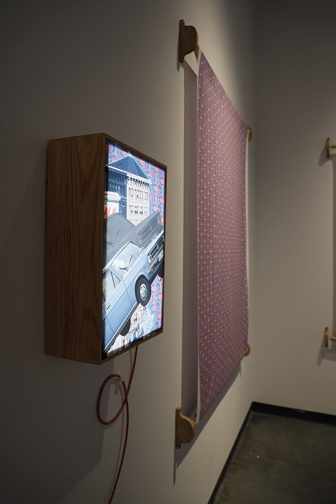 This installation features a series of prints by Lisa Marie Patzer. Inspired by 35mm slides captured by Ben Kabakow, a NYC postal worker and photographer who travelled the world throughout the mid-1900’s, Patzer remixes urban features such as buildings, cars, signs, and people. With color, pattern, and a retro-graphic design, Lisa Marie reimagines scenes from Ben’s travels with surreal and whimsical aesthetic.